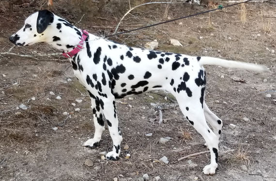 Flicker was bred by, born and raised by us at Paradise Spots Dalmatians LLC. She is a full (younger) sister to Gypsy, though there are a lot of differences between the two sisters! Flicker is much taller than Gypsy, for one.